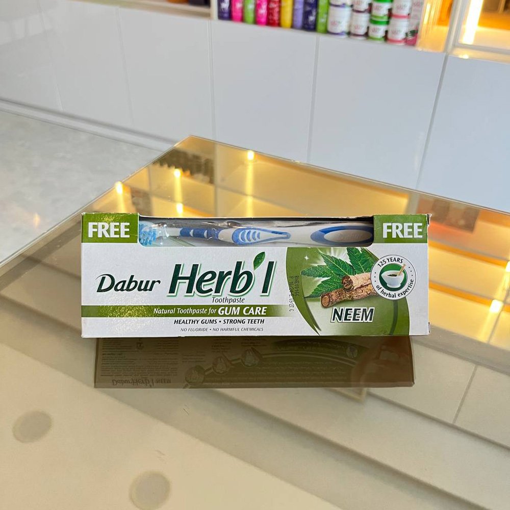 الوسوم: Dabur Herb'l Neem, العناية باللثة والأسنان., دابر معجون أسنان, علاج التهاب اللثة, فرشاة أسنان هدية, معجون أسنان بالنيم, معجون أسنان طبيعي, معجون دابر هيربل